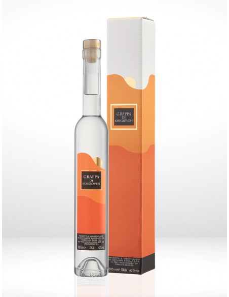 Caratteristica della terra toscana, la Grappa di Sangiovese è ricca di profumi e di piacevoli gusti di frutti a bacca rossa. Questo prodotto raffinato è racchiuso in una bottiglia slanciata e astucciata, con grafiche che richiamano proprio le colline senesi di provenienza.